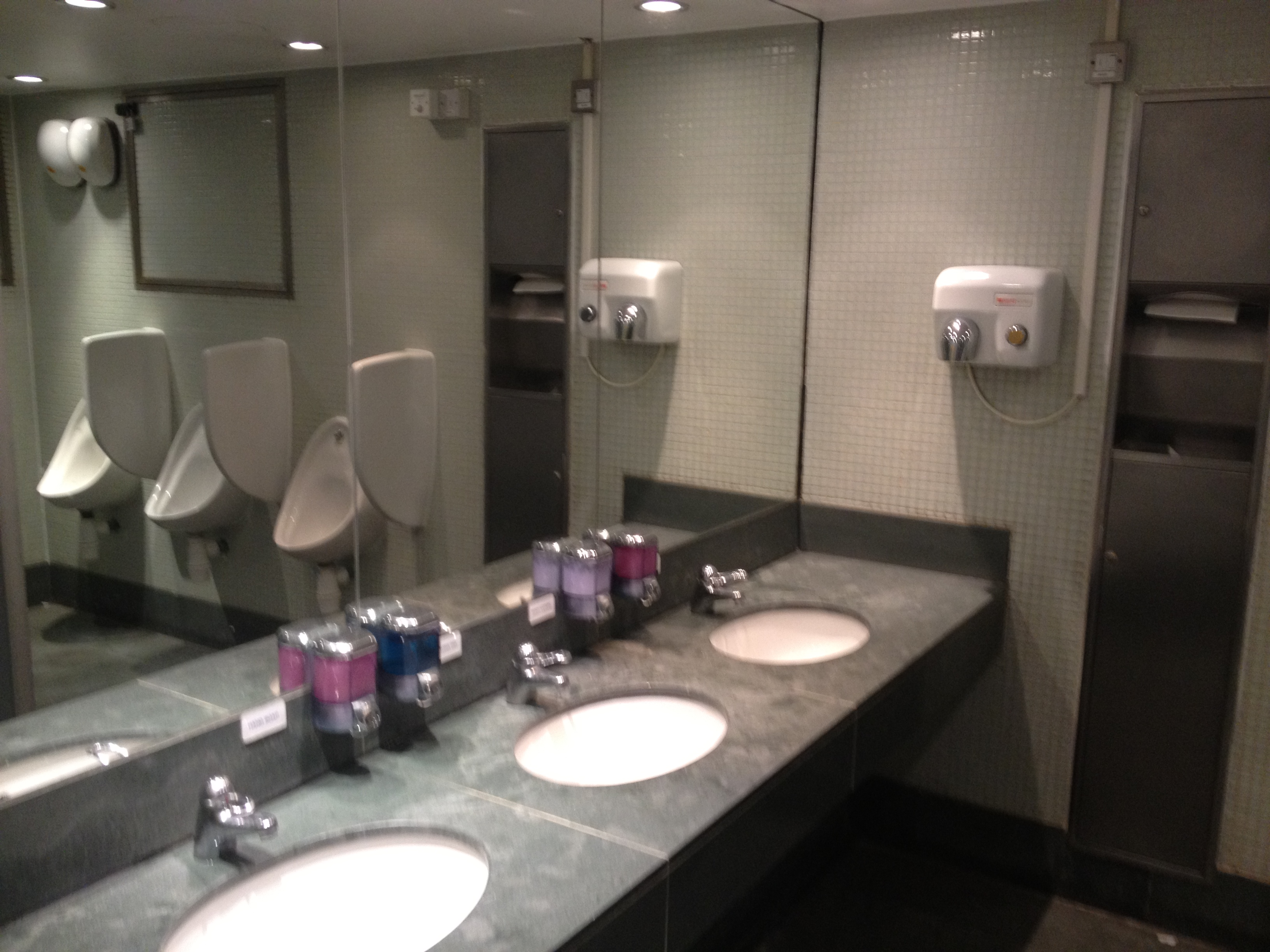 The toilets thus are very clean, adopt a very flattering lighting scheme and being very much about the mirror. One can only imagine the amount of people entering the toilets, top off, hoping that after the one heartfelt workout they managed, a 6 packed Adonis is waiting for them only to have hope thrust from them by the same reflection as before albeit slightly more out of breath. Status quo is the cross we all have to bear at some stage.
