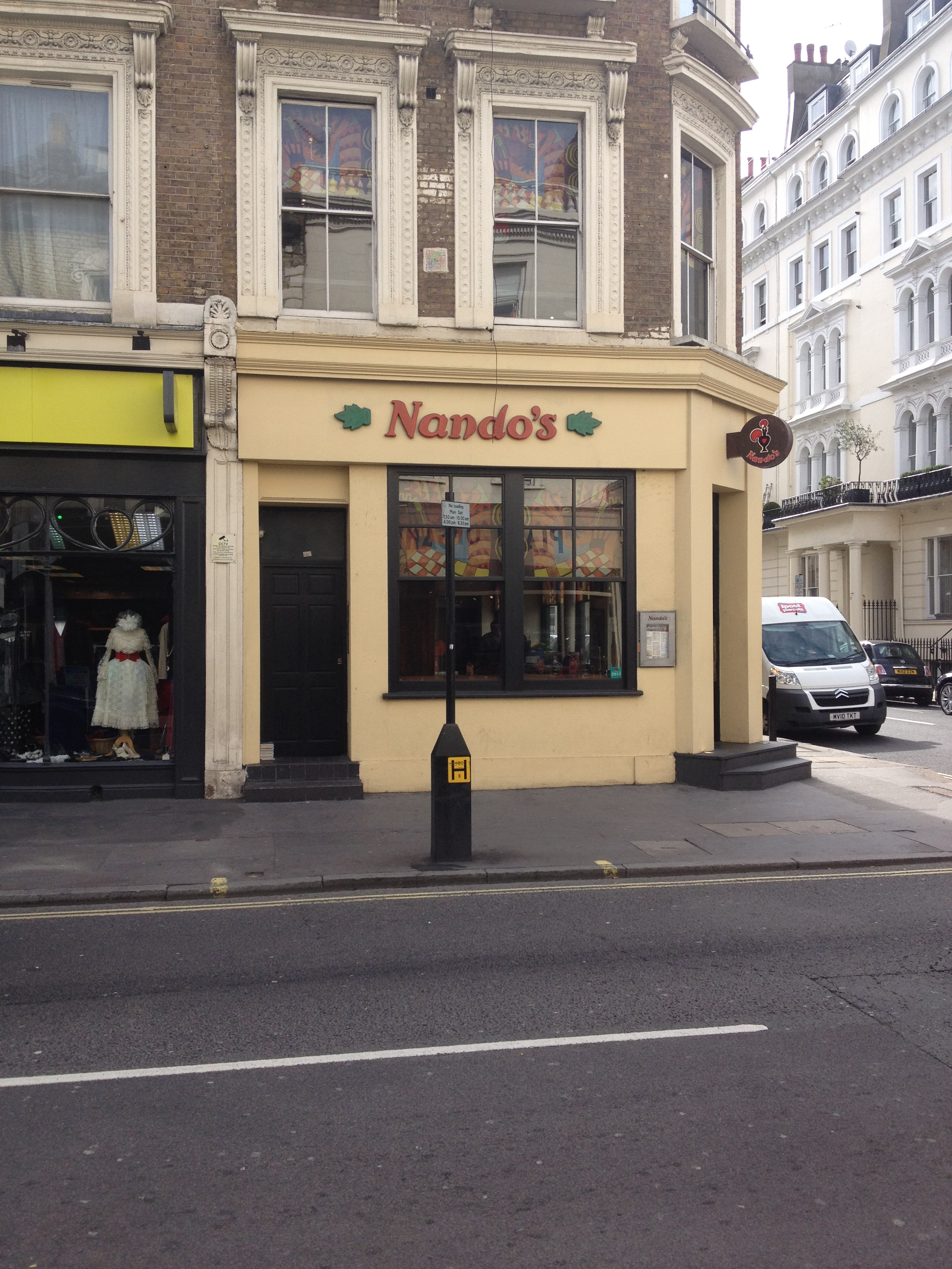 The most fascinating thing about Nando’s is where they are located, The Porcelain Gentleman suggests you look at this on line to understand the subtext. Yes there are some, indeed most, in faceless suburban shopping malls and down market high streets in provincial towns, but within the capital, Nando’s seems to have outlets in Shoreditch, Southbank, Battersea rise, Covent Garden, Bloomsbury, Chalk Farm, Stoke Newington etc etc. Granted this is not a shocking revelation for a successful franchise, but Nando’s appears to be situated in areas that have some aspiration of sitting within the goalposts of being either ‘upmarket’ or ‘trendy’.