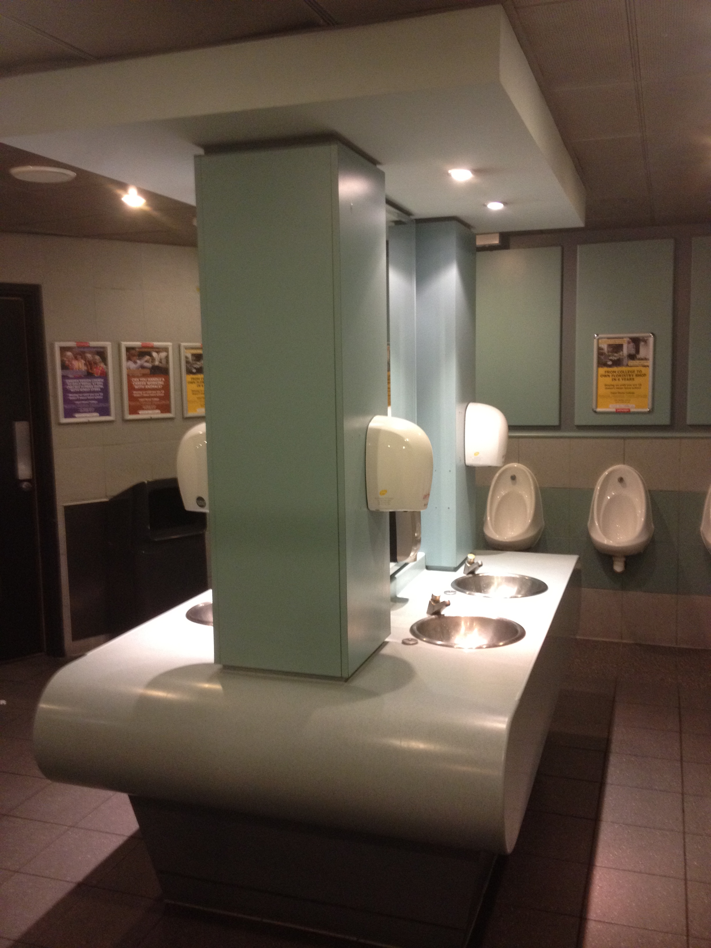In most cases, toilets in buildings that cater for potentially a large amount of customers will adopt the rather depressing layout of having everything pressed tight to the wall like they are undergoing some sort of humiliating search by an American state trooper, leaving a large barren piece of space in the middle, whose only function is to ensure that on the three large steps from the urinal to the basin you do up your fly.