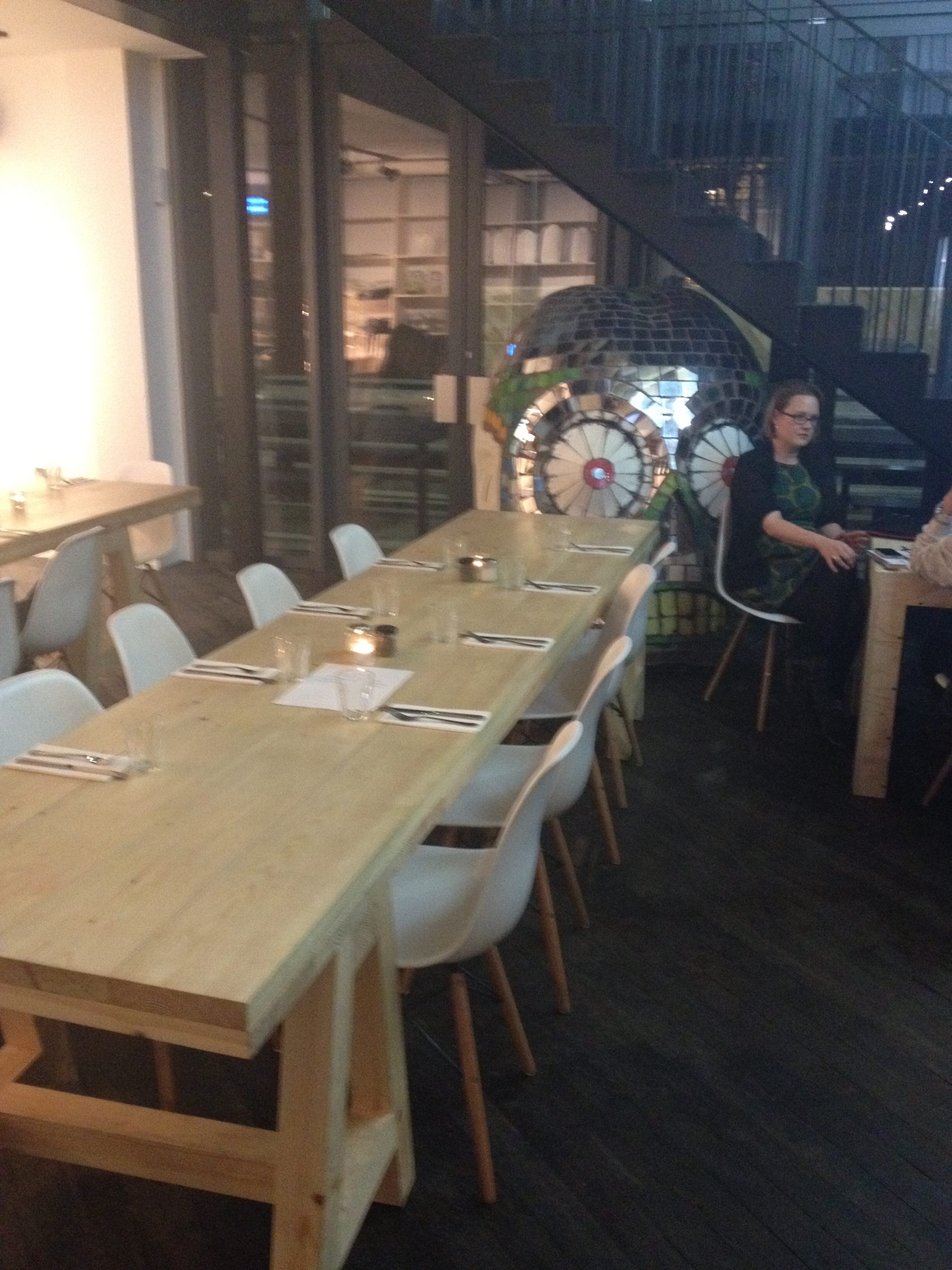 The art is immersive – it’s where you eat, where you drink, where you sit – but at the same time non-committal. You may legitimately be here simply to read a paper and take shelter from the locust plague of Boris Bikes wreaking havoc outside.