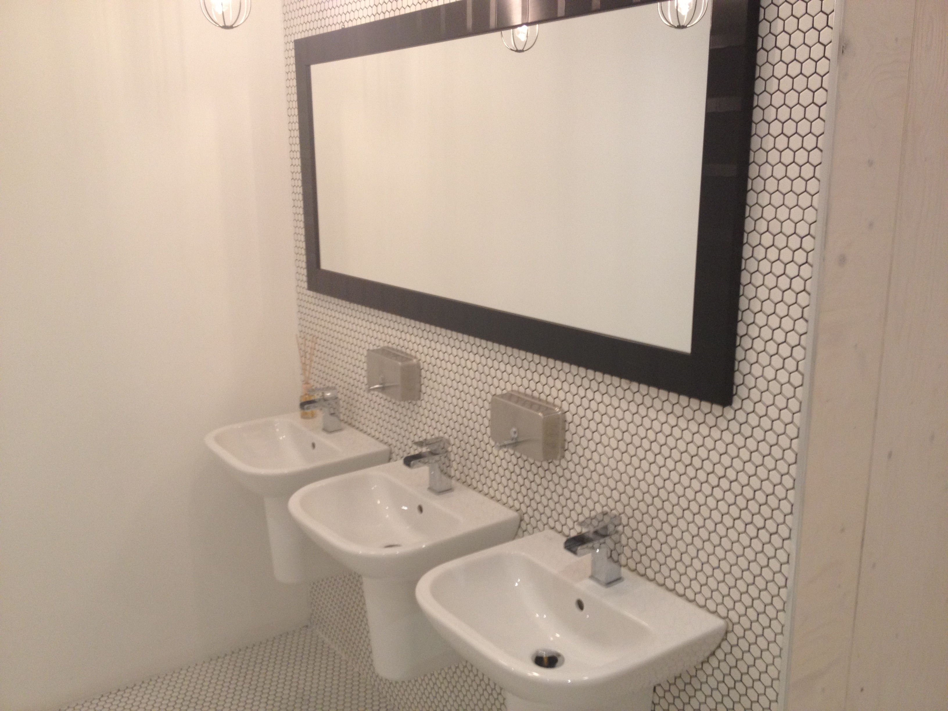 The Dyson hand dryer juts out almost with a knowingness of its unusual material make up. It’s flattened design ensuring a level of continuity with the wall, the discharge of air subtly to the side as to avoid blasting warm particles of recycled dust across the room and disrupting the equilibrium.