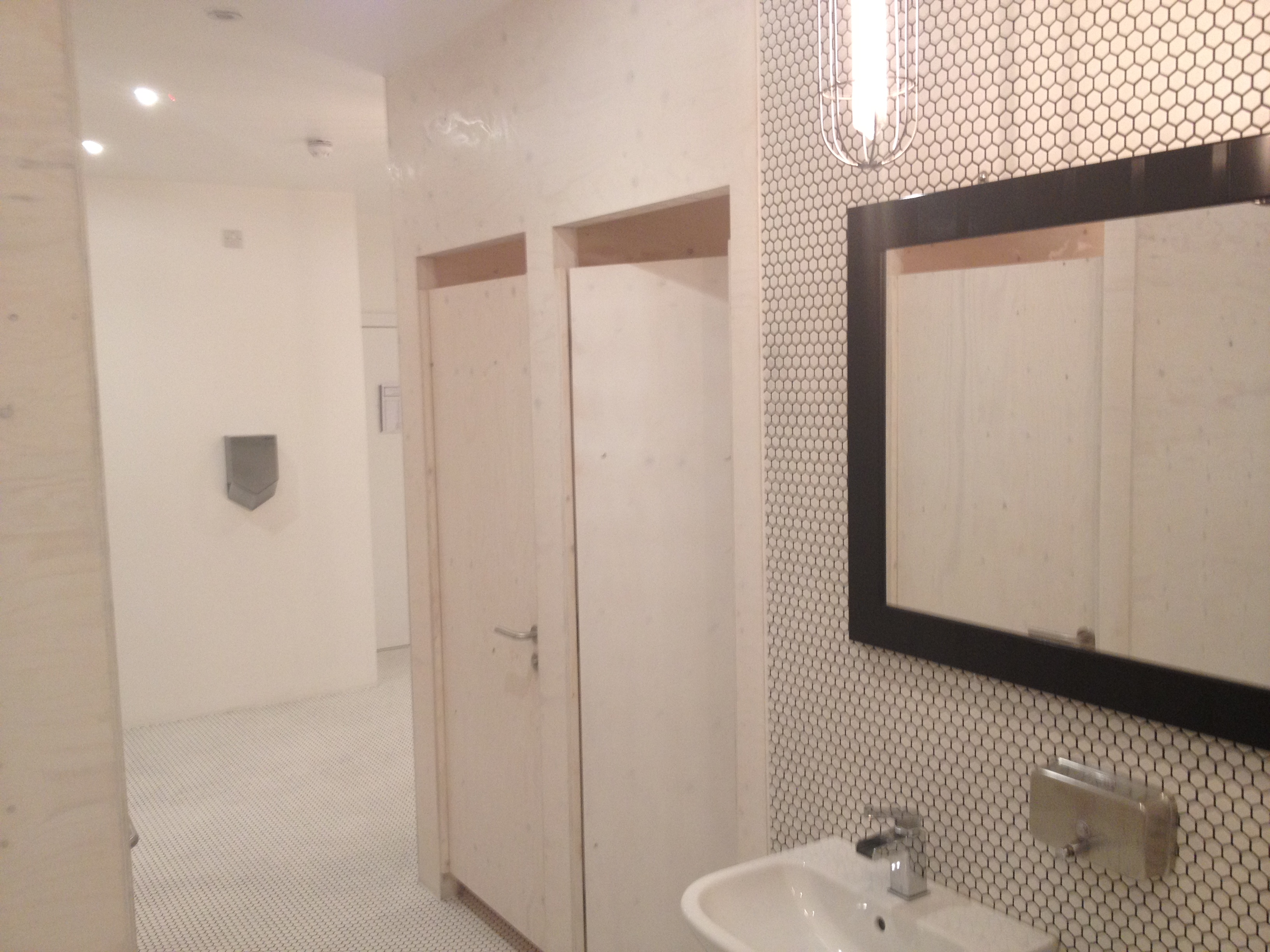 One’s mind is somewhat neutralised again, brought away from the fanciful world of elaborate artistic rhetoric and into the spotlight of requisite human bodily function. Doors remain unpainted, tiles homogenous.