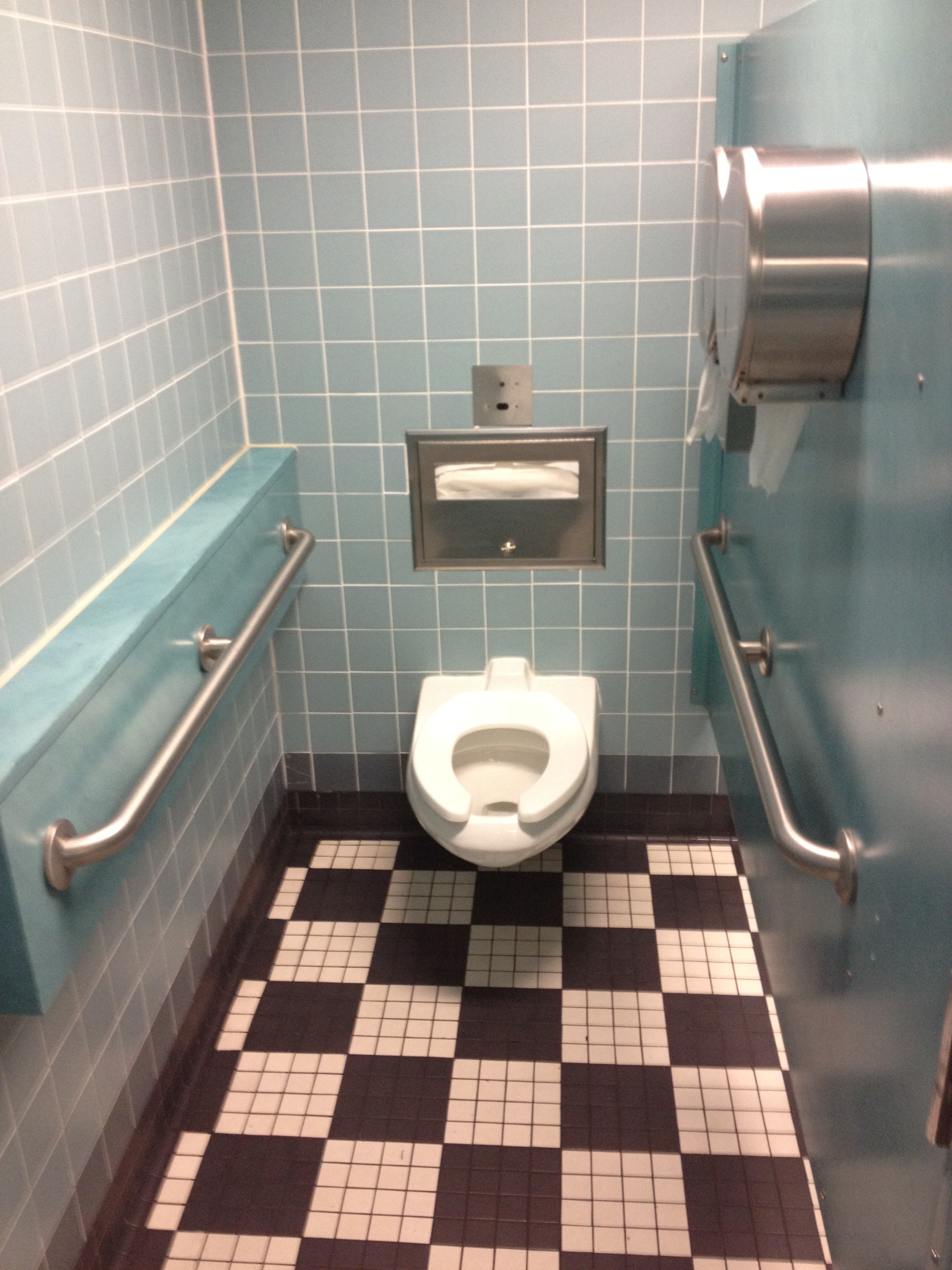 America: Ye olde buildings. Colonial feel. Huge toilets, biggest by a distance, many disabled. ATM in the toilet area just in case money is needed inside the restrooms. The whole experience is refreshingly honest.